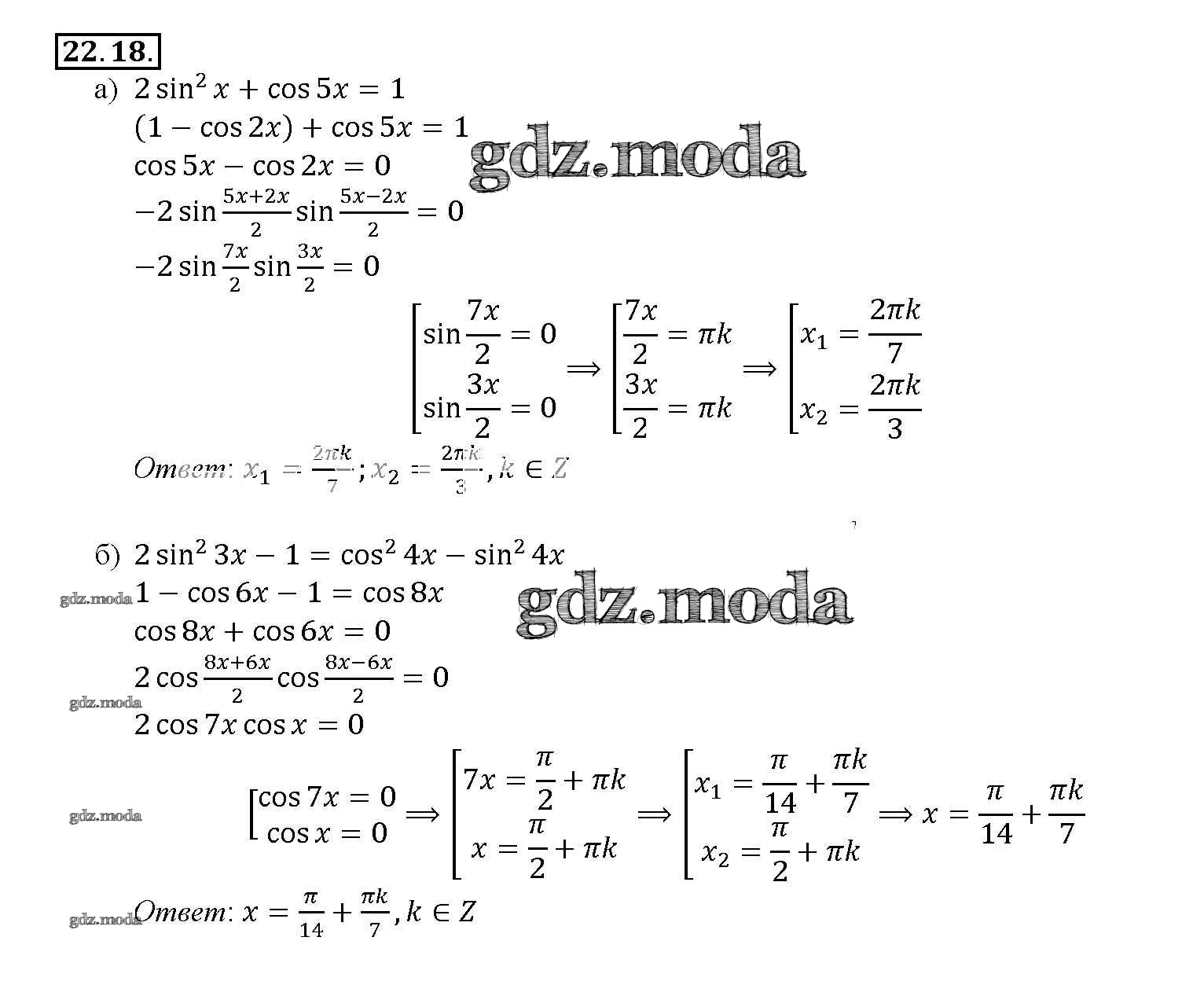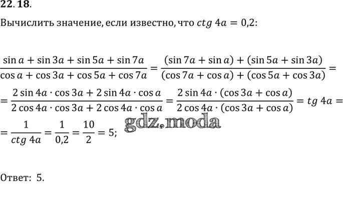 ОТВЕТ на задание № 22. 18 Задачник по Алгебре 10-11 класс Мордкович Базовый уровень