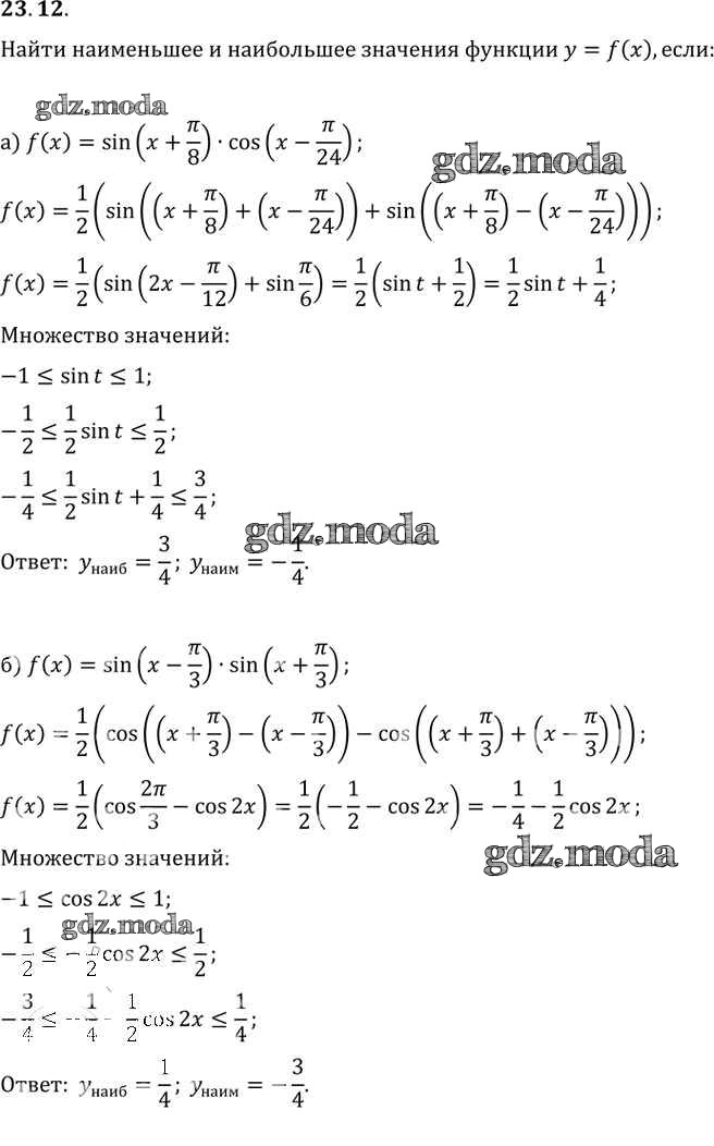 ОТВЕТ на задание № 23. 12 Задачник по Алгебре 10-11 класс Мордкович Базовый уровень