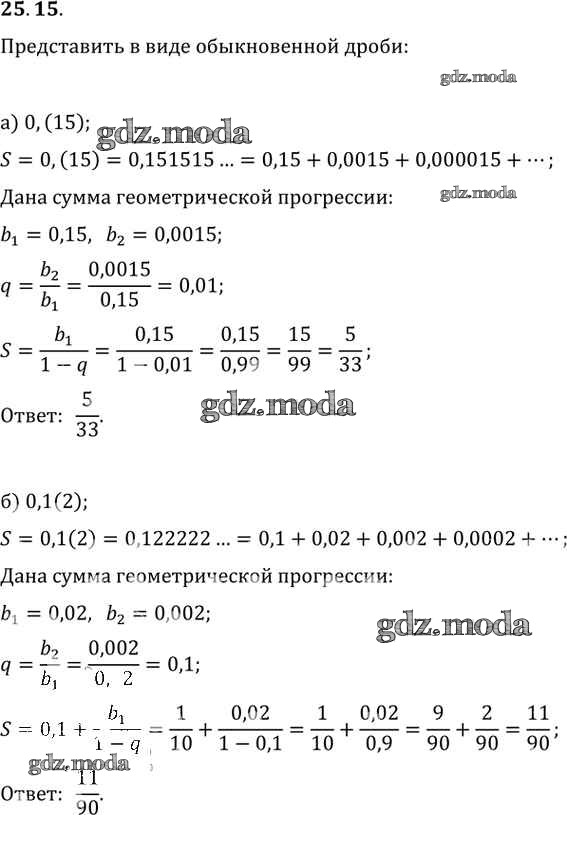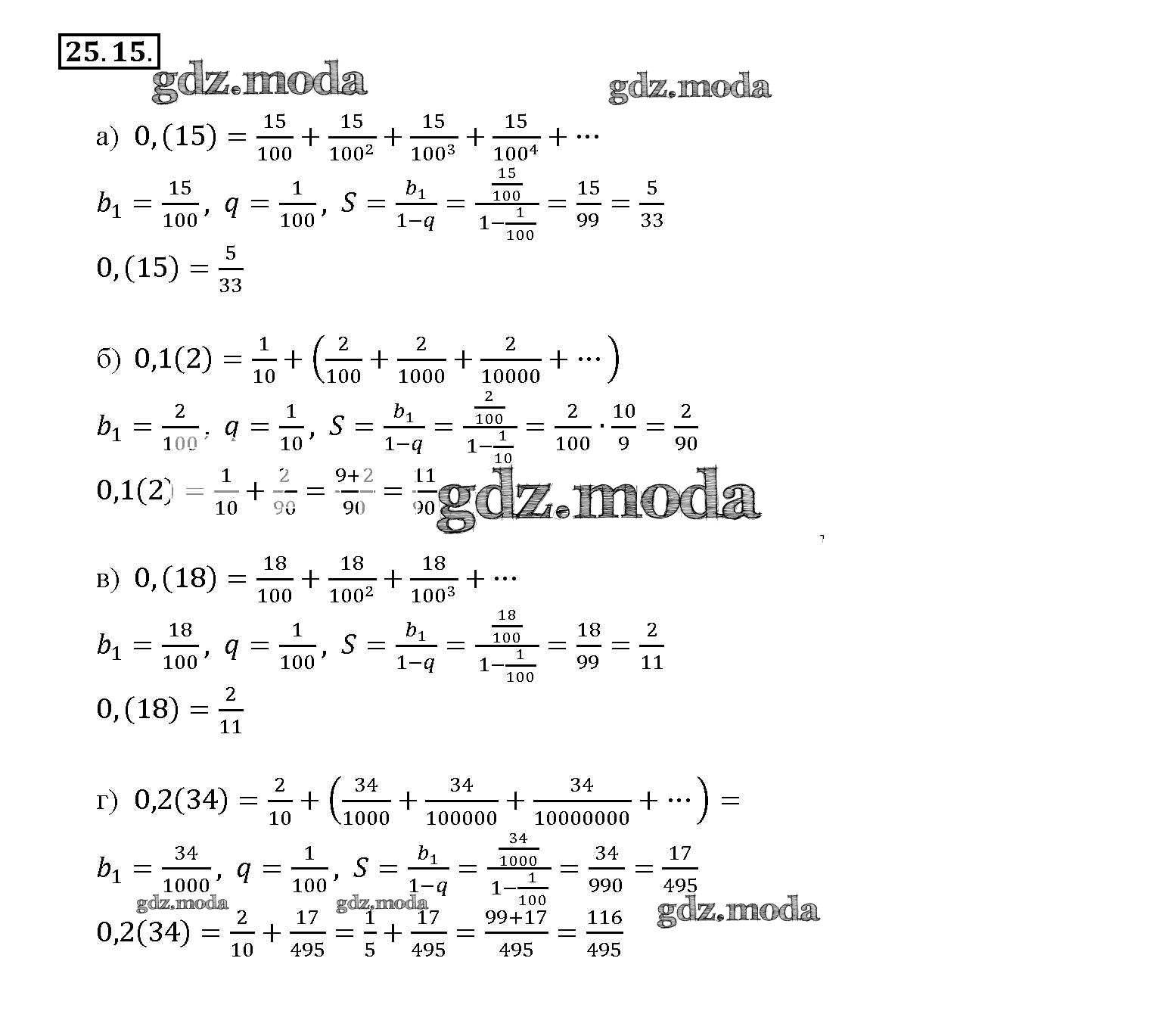 ОТВЕТ на задание № 25. 15 Задачник по Алгебре 10-11 класс Мордкович Базовый уровень
