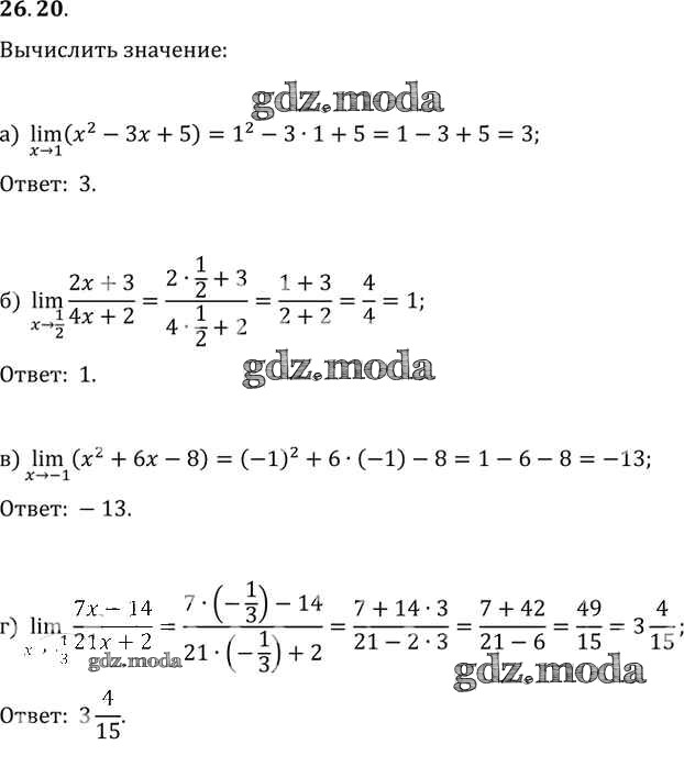 ОТВЕТ на задание № 26. 20 Задачник по Алгебре 10-11 класс Мордкович Базовый уровень