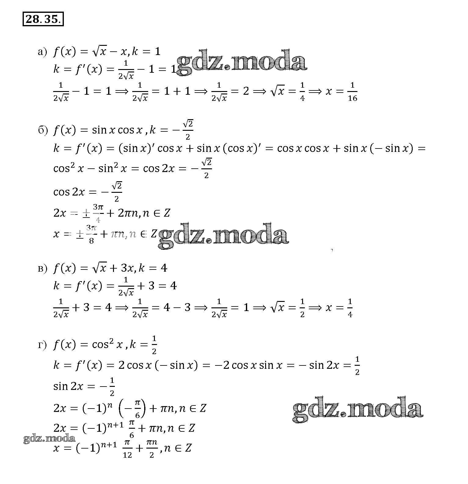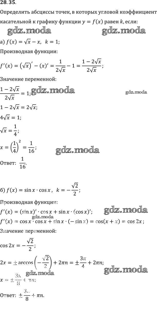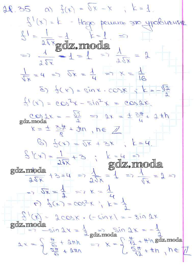 ОТВЕТ на задание № 28. 35 Задачник по Алгебре 10-11 класс Мордкович Базовый уровень