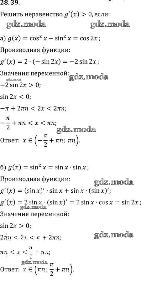 ОТВЕТ на задание № 28. 39 Задачник по Алгебре 10-11 класс Мордкович Базовый уровень