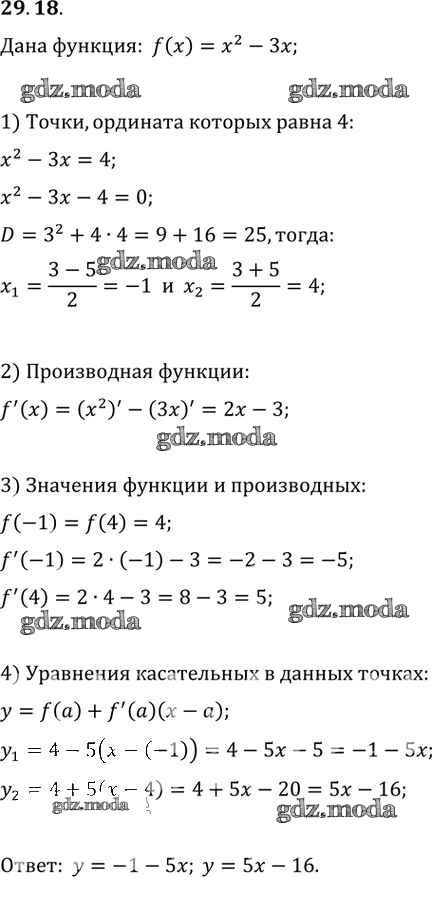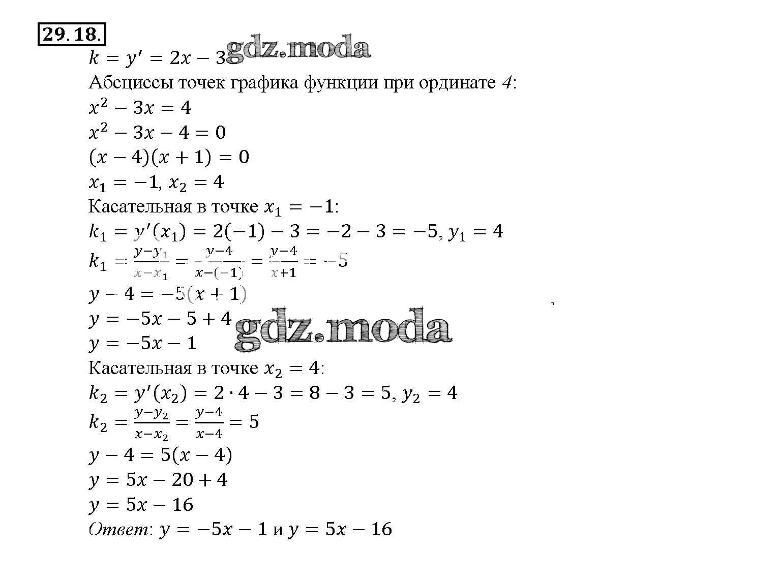 ОТВЕТ на задание № 29. 18 Задачник по Алгебре 10-11 класс Мордкович Базовый уровень