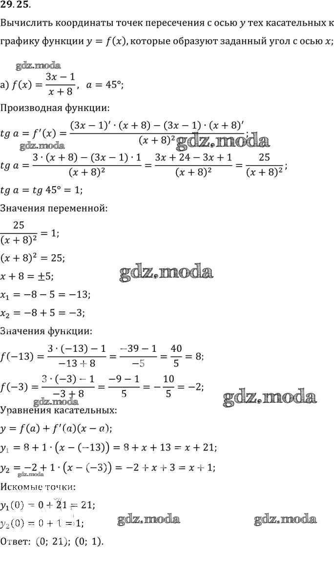 ОТВЕТ на задание № 29. 25 Задачник по Алгебре 10-11 класс Мордкович Базовый уровень