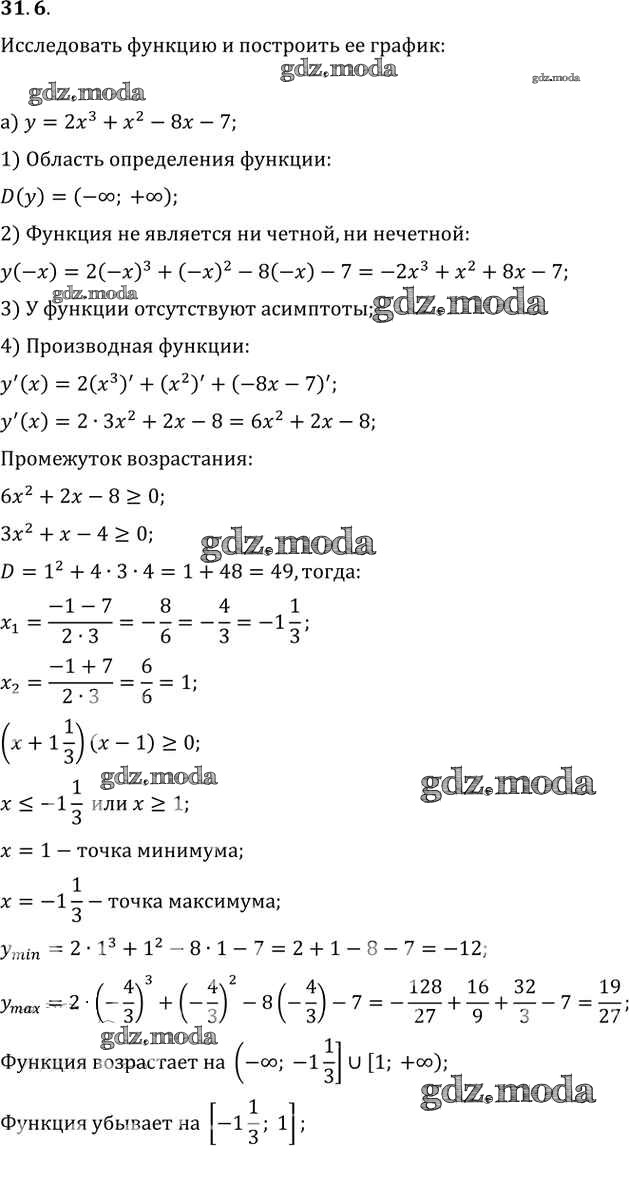 ОТВЕТ на задание № 31. 6 Задачник по Алгебре 10-11 класс Мордкович Базовый уровень