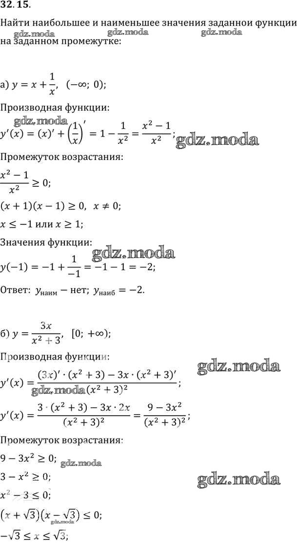 ОТВЕТ на задание № 32. 15 Задачник по Алгебре 10-11 класс Мордкович Базовый уровень