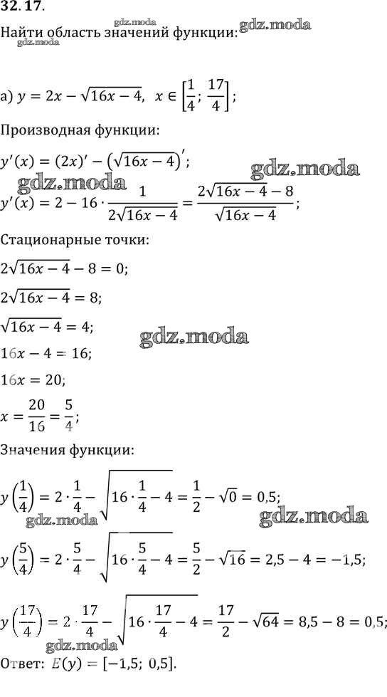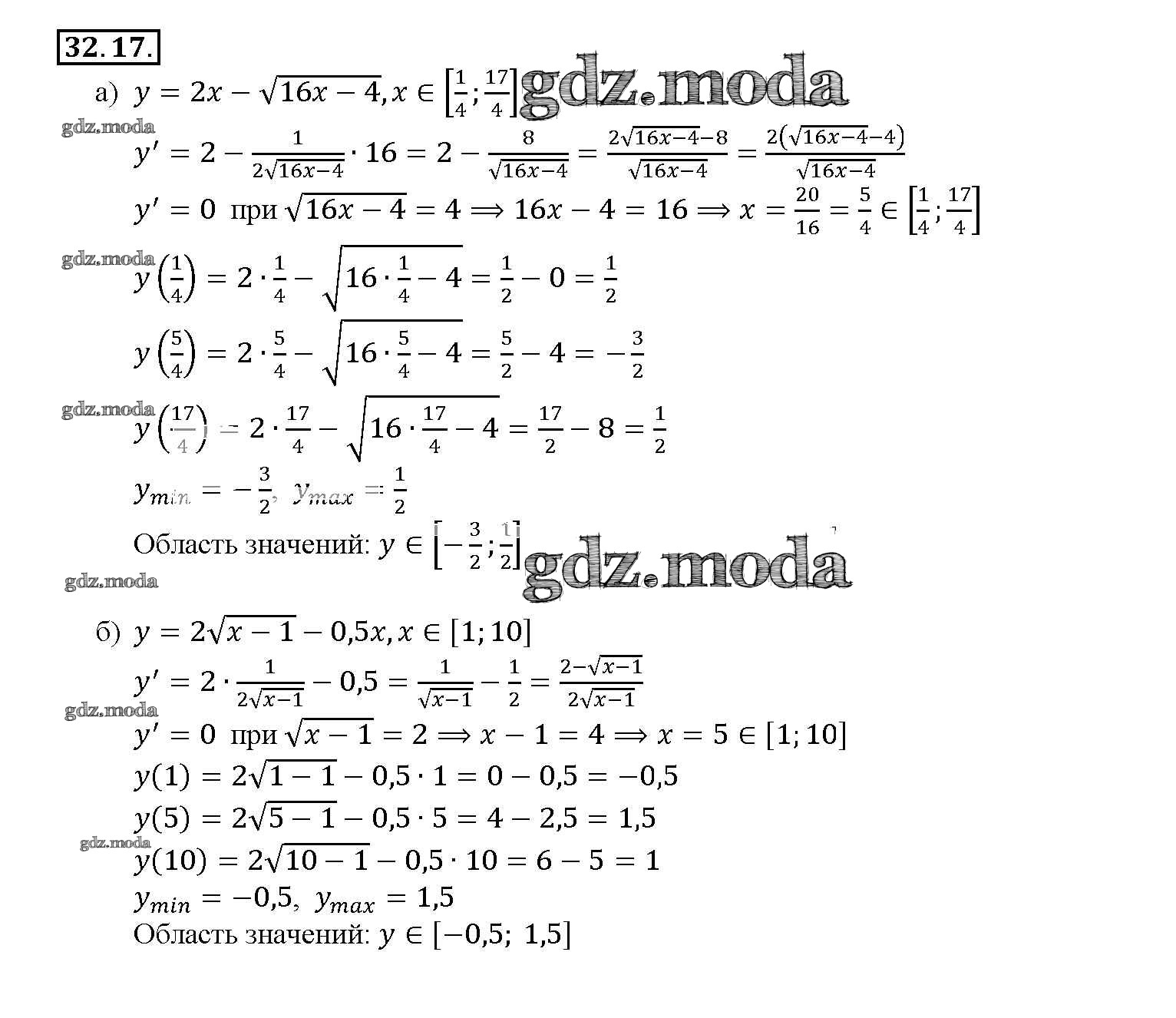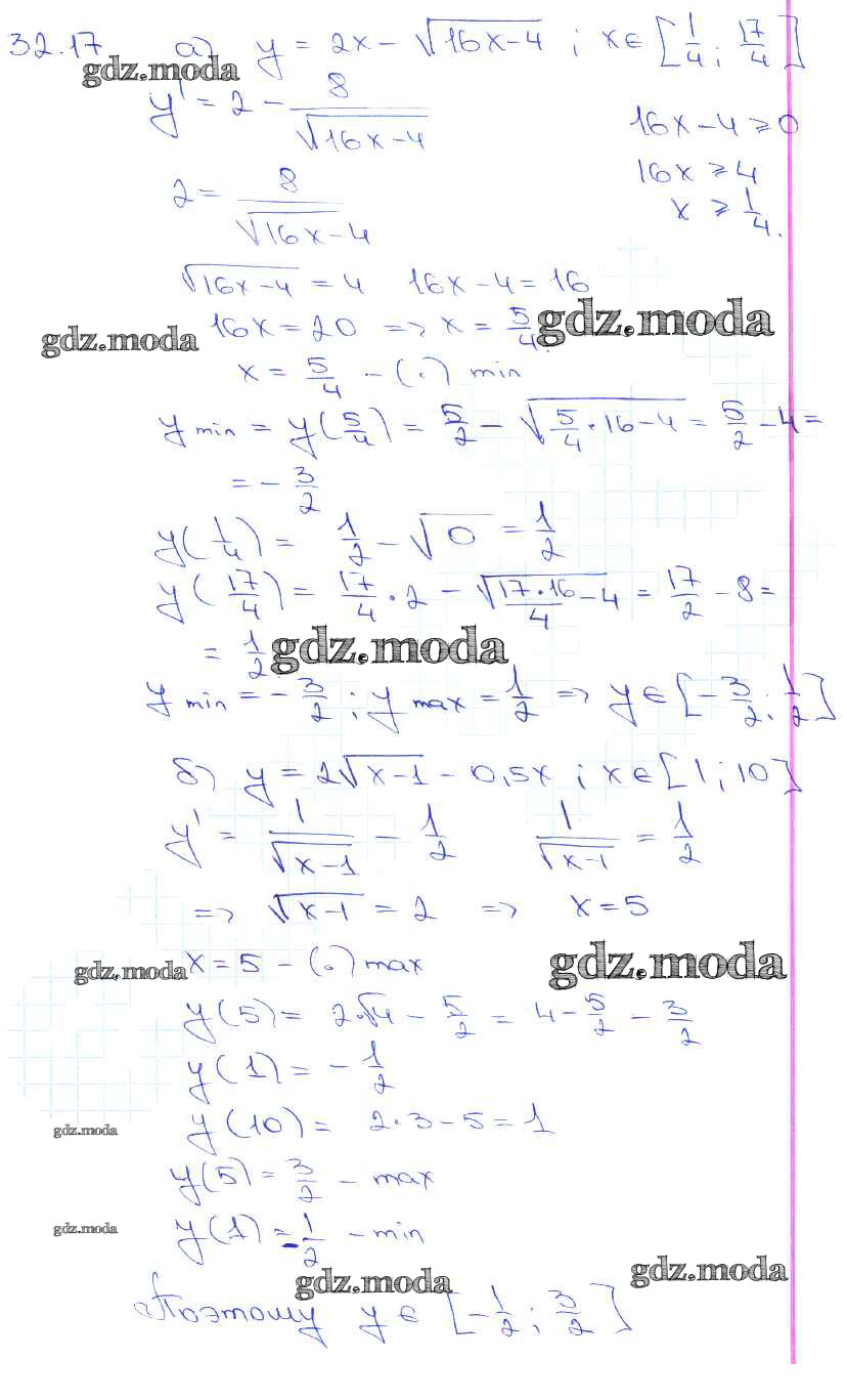 ОТВЕТ на задание № 32. 17 Задачник по Алгебре 10-11 класс Мордкович Базовый уровень