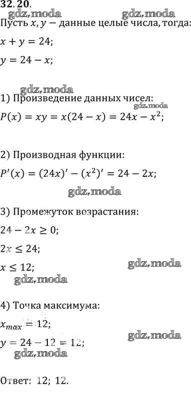ОТВЕТ на задание № 32. 20 Задачник по Алгебре 10-11 класс Мордкович Базовый уровень