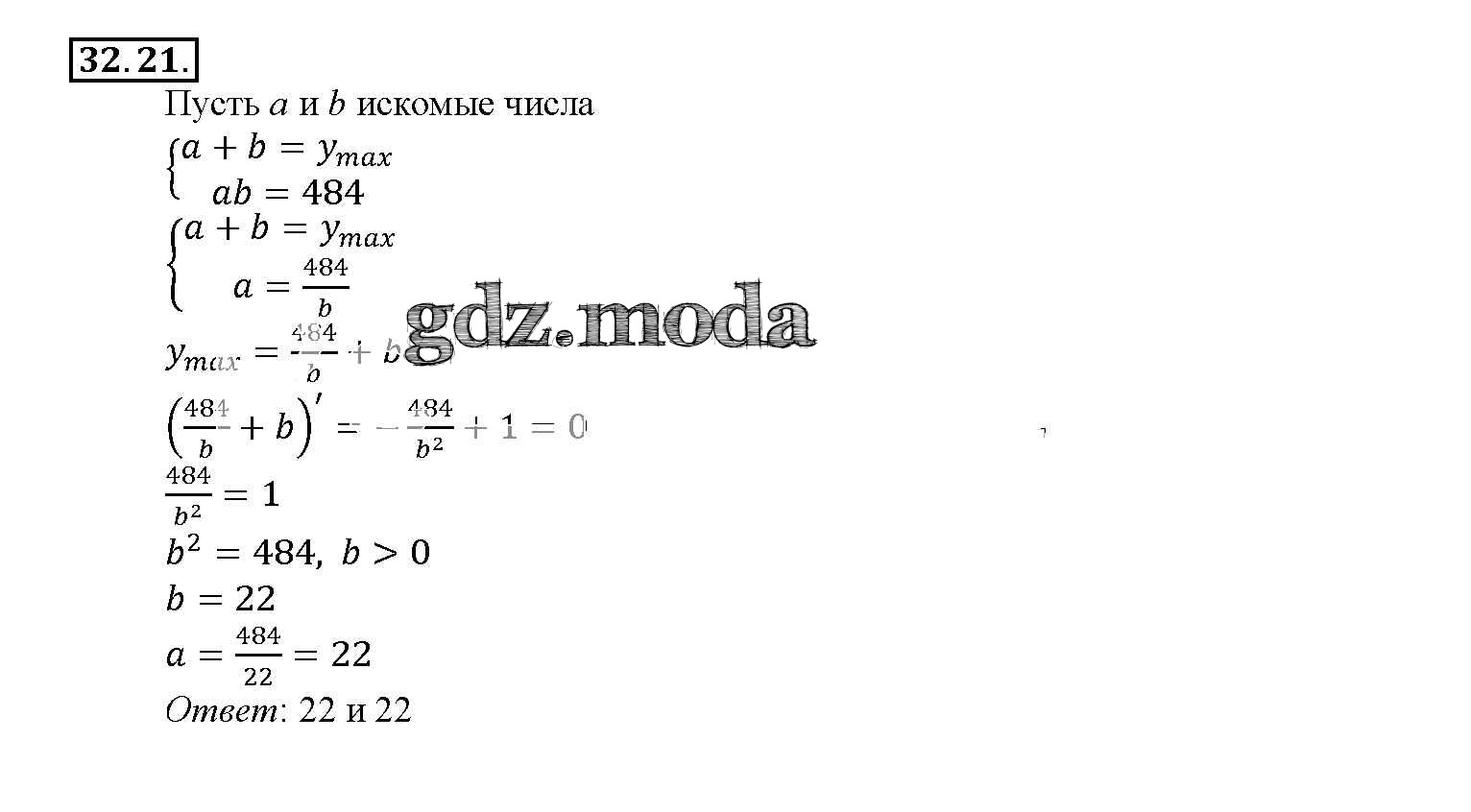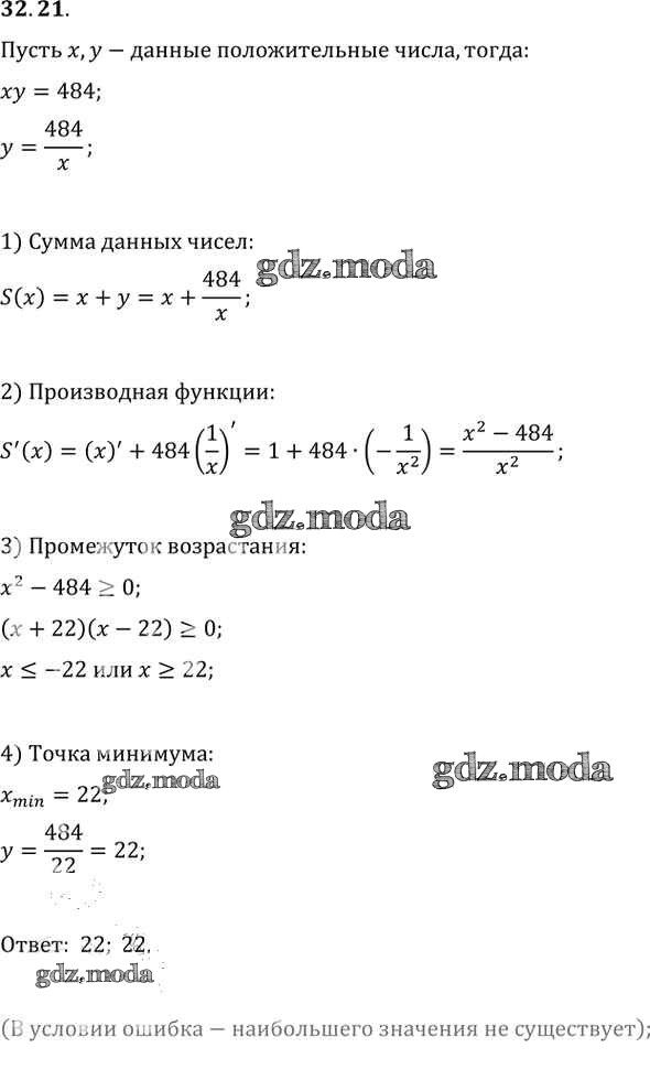 ОТВЕТ на задание № 32. 21 Задачник по Алгебре 10-11 класс Мордкович Базовый уровень