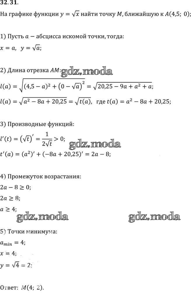 ОТВЕТ на задание № 32. 31 Задачник по Алгебре 10-11 класс Мордкович Базовый уровень