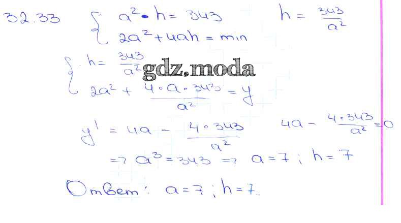 ОТВЕТ на задание № 32. 33 Задачник по Алгебре 10-11 класс Мордкович Базовый уровень