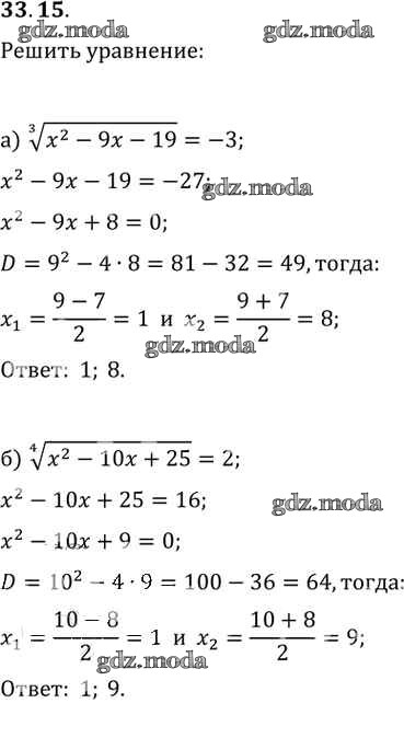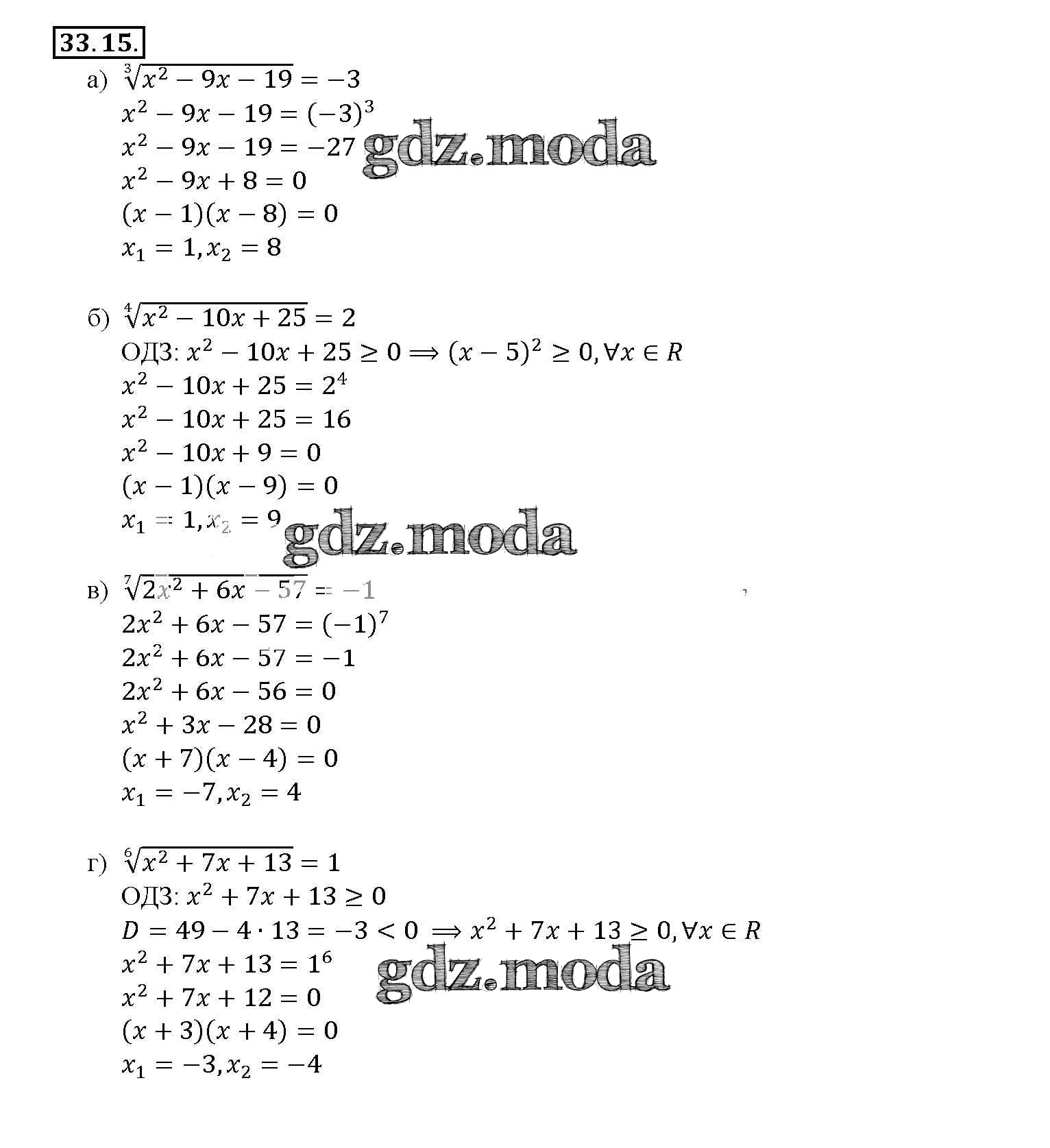 ОТВЕТ на задание № 33. 15 Задачник по Алгебре 10-11 класс Мордкович Базовый уровень