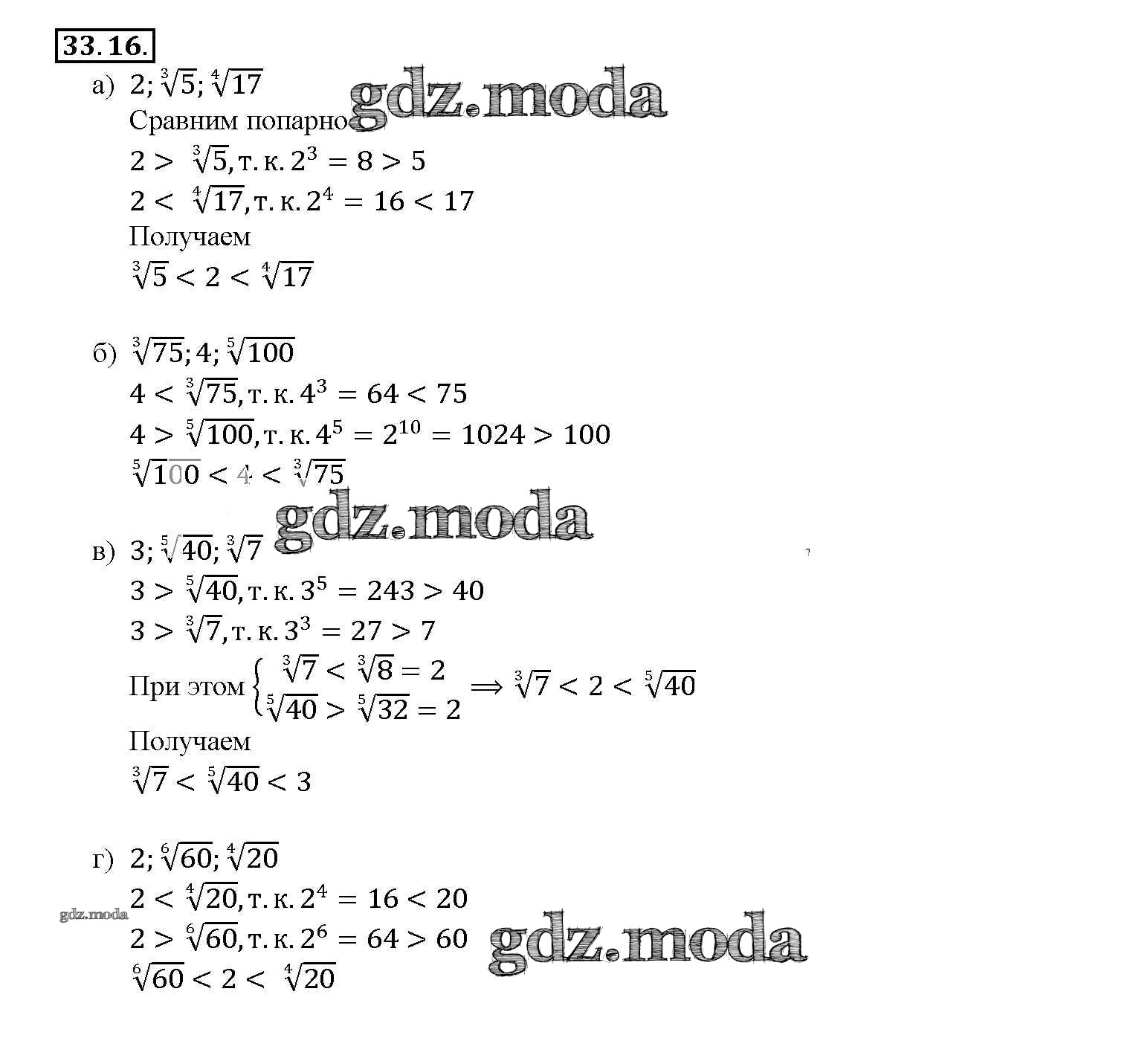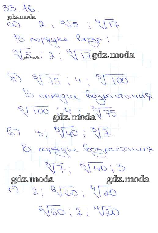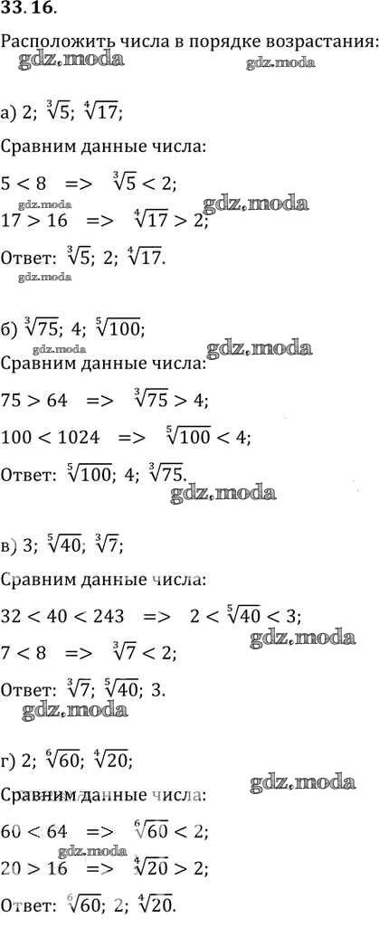 ОТВЕТ на задание № 33. 16 Задачник по Алгебре 10-11 класс Мордкович Базовый уровень