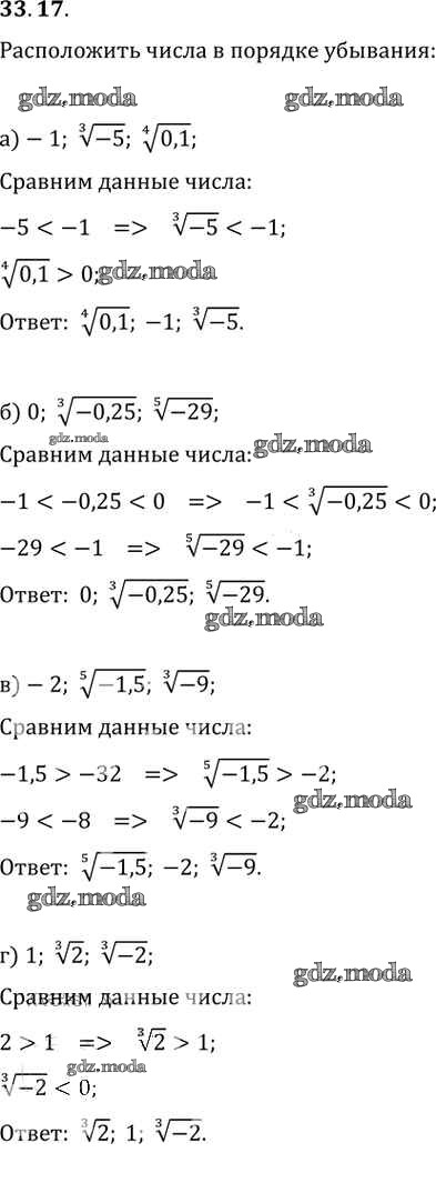 ОТВЕТ на задание № 33. 17 Задачник по Алгебре 10-11 класс Мордкович Базовый уровень