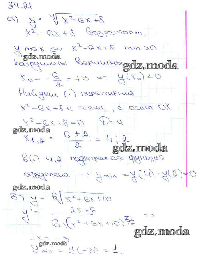 ОТВЕТ на задание № 34. 21 Задачник по Алгебре 10-11 класс Мордкович Базовый уровень