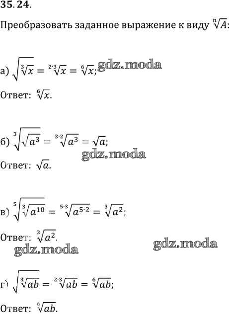 ОТВЕТ на задание № 35. 24 Задачник по Алгебре 10-11 класс Мордкович Базовый уровень