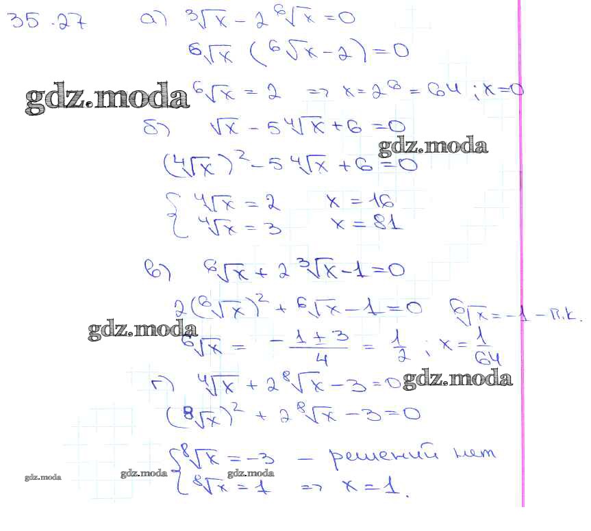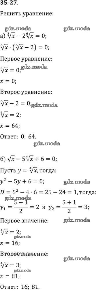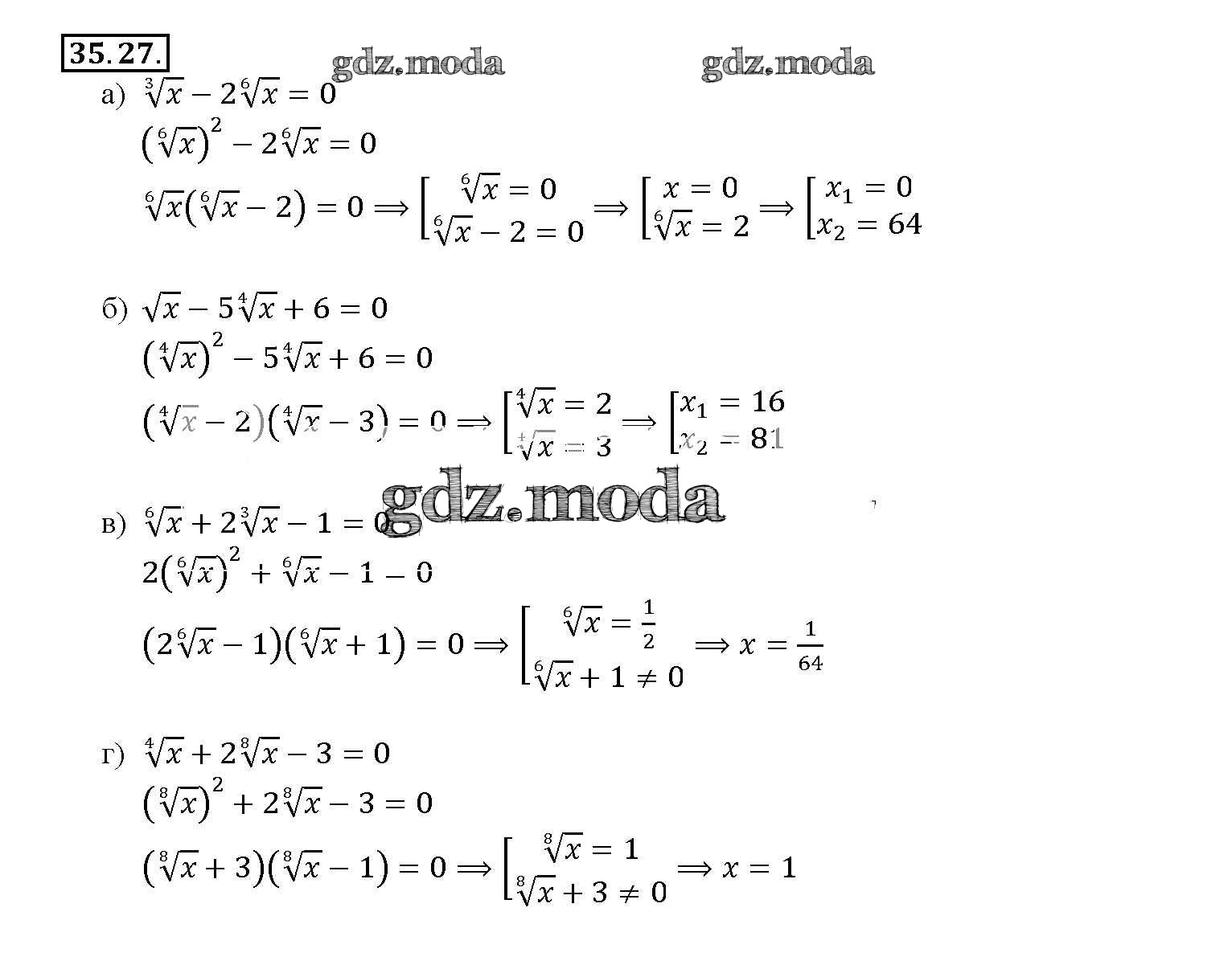 ОТВЕТ на задание № 35. 27 Задачник по Алгебре 10-11 класс Мордкович Базовый уровень