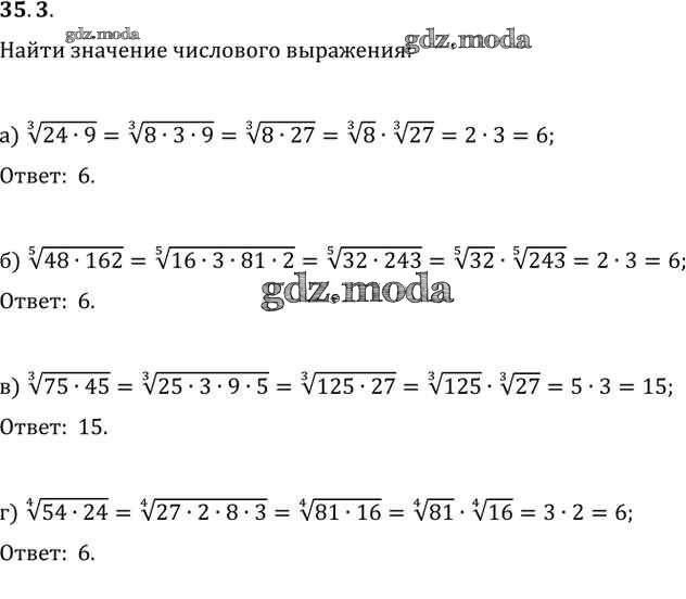 ОТВЕТ на задание № 35. 3 Задачник по Алгебре 10-11 класс Мордкович Базовый уровень