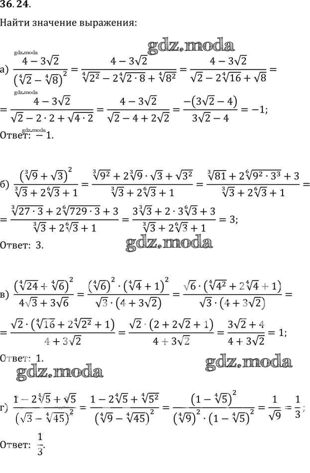 ОТВЕТ на задание № 36. 24 Задачник по Алгебре 10-11 класс Мордкович Базовый уровень
