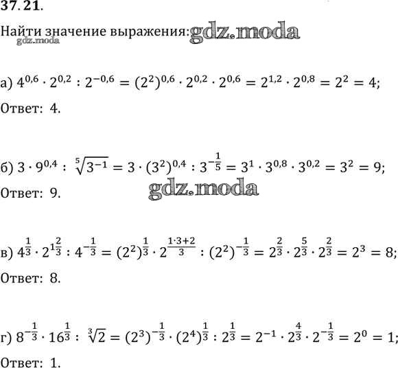 ОТВЕТ на задание № 37. 21 Задачник по Алгебре 10-11 класс Мордкович Базовый уровень