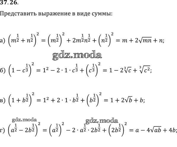 ОТВЕТ на задание № 37. 26 Задачник по Алгебре 10-11 класс Мордкович Базовый уровень