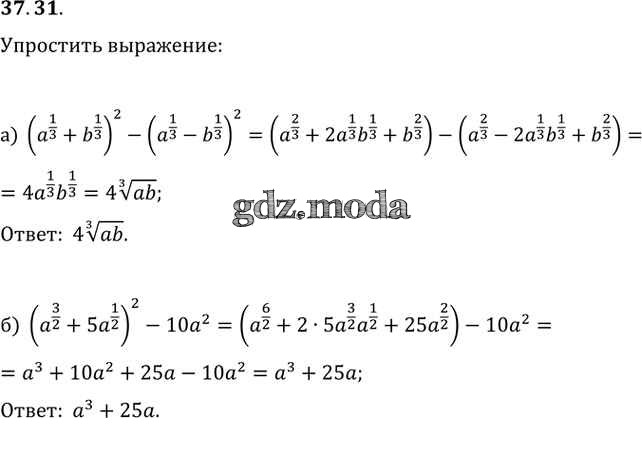 ОТВЕТ на задание № 37. 31 Задачник по Алгебре 10-11 класс Мордкович Базовый уровень