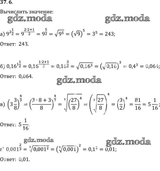ОТВЕТ на задание № 37. 6 Задачник по Алгебре 10-11 класс Мордкович Базовый уровень