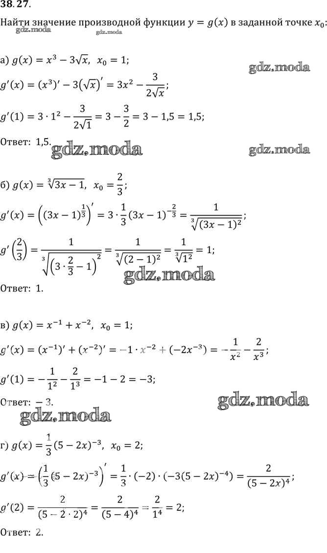 ОТВЕТ на задание № 38. 27 Задачник по Алгебре 10-11 класс Мордкович Базовый уровень