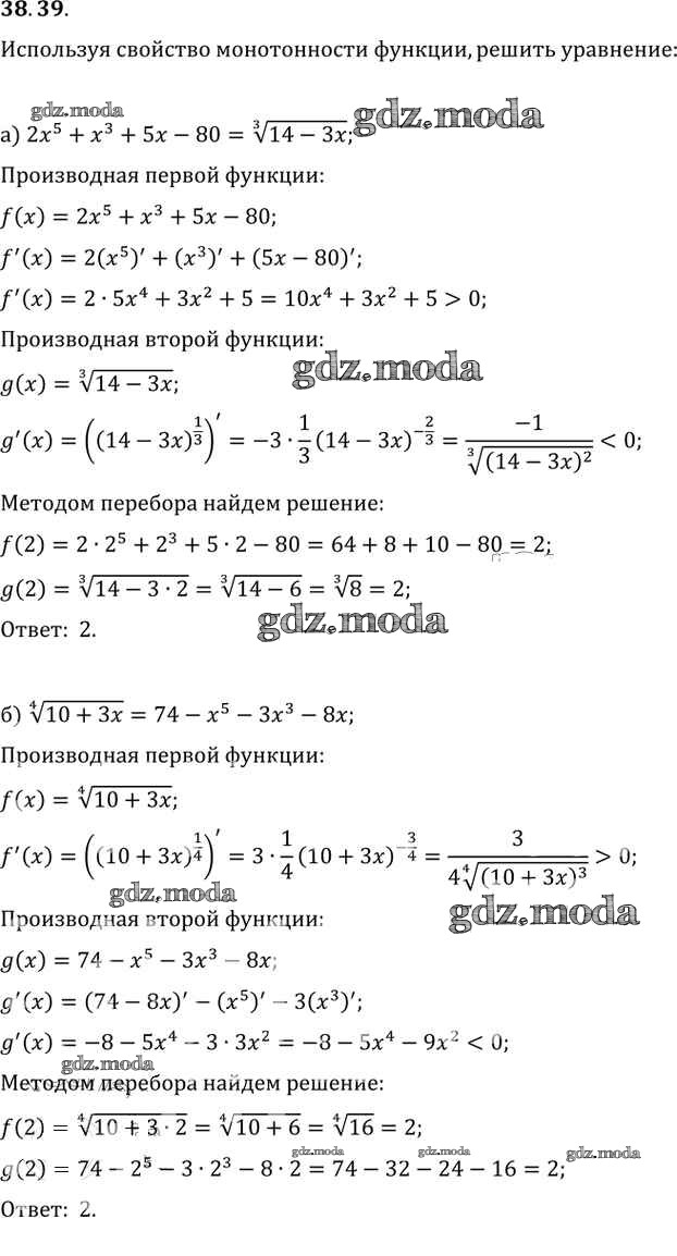 ОТВЕТ на задание № 38. 39 Задачник по Алгебре 10-11 класс Мордкович Базовый уровень