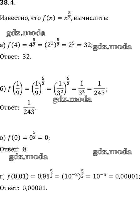 ОТВЕТ на задание № 38. 4 Задачник по Алгебре 10-11 класс Мордкович Базовый уровень