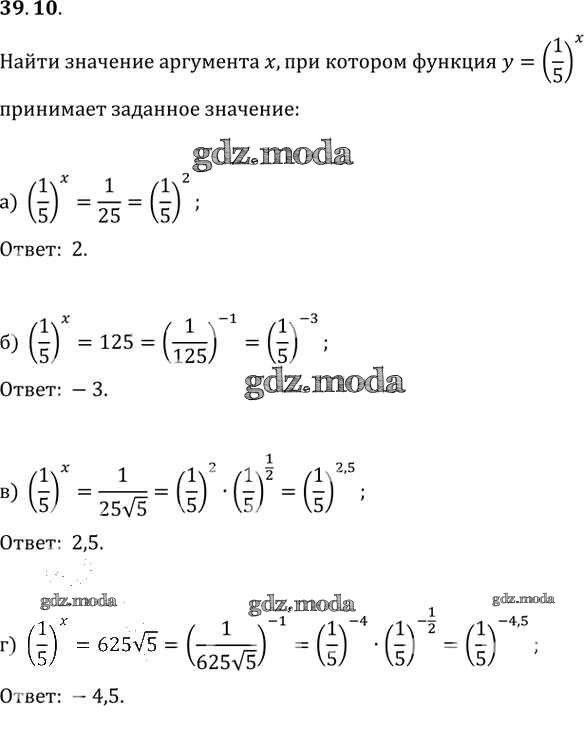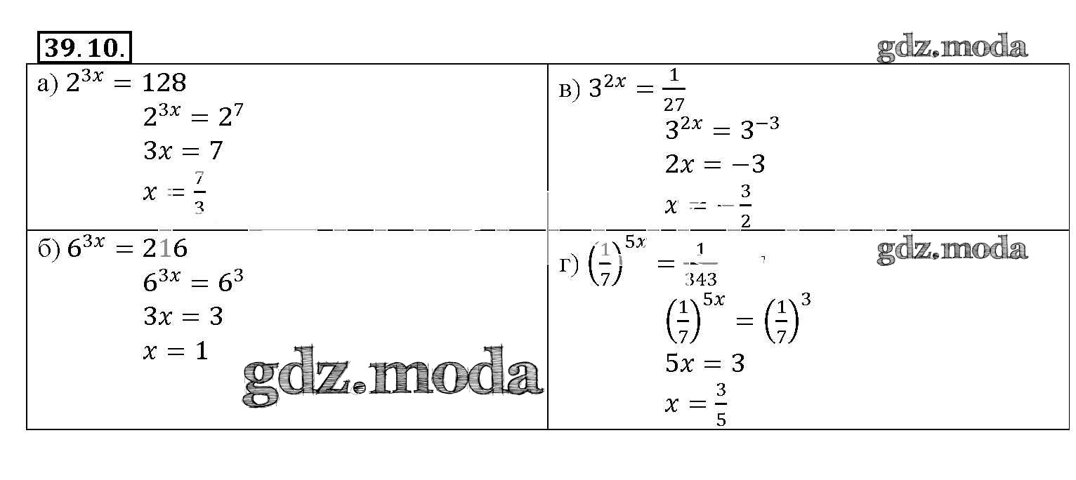 ОТВЕТ на задание № 39. 10 Задачник по Алгебре 10-11 класс Мордкович Базовый уровень