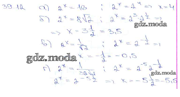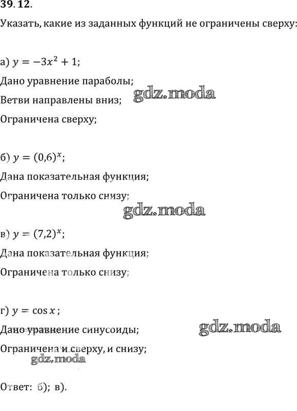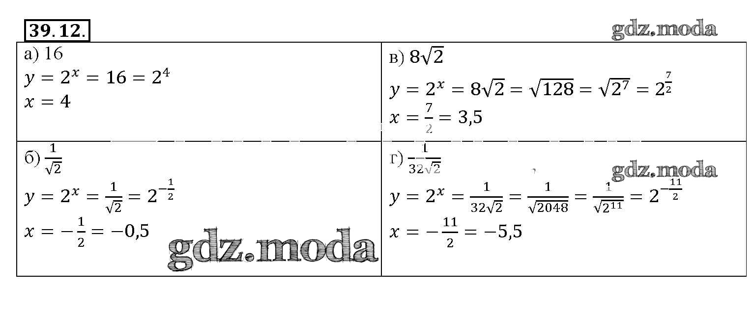 ОТВЕТ на задание № 39. 12 Задачник по Алгебре 10-11 класс Мордкович Базовый уровень