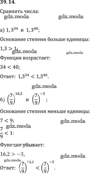 ОТВЕТ на задание № 39. 14 Задачник по Алгебре 10-11 класс Мордкович Базовый уровень