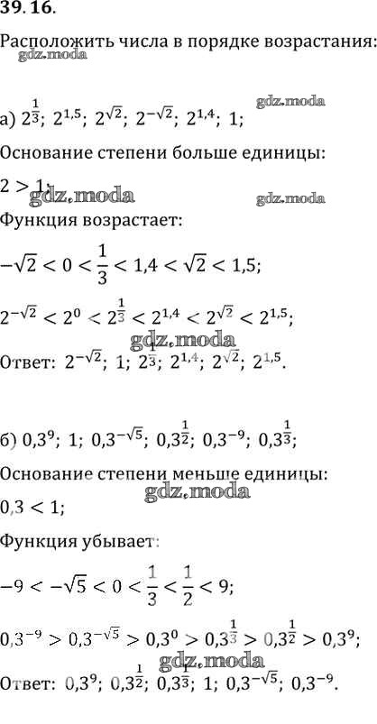 ОТВЕТ на задание № 39. 16 Задачник по Алгебре 10-11 класс Мордкович Базовый уровень