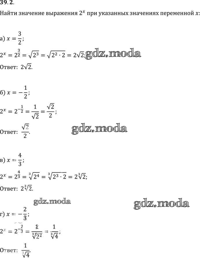 ОТВЕТ на задание № 39. 2 Задачник по Алгебре 10-11 класс Мордкович Базовый уровень
