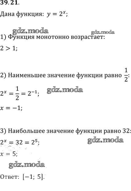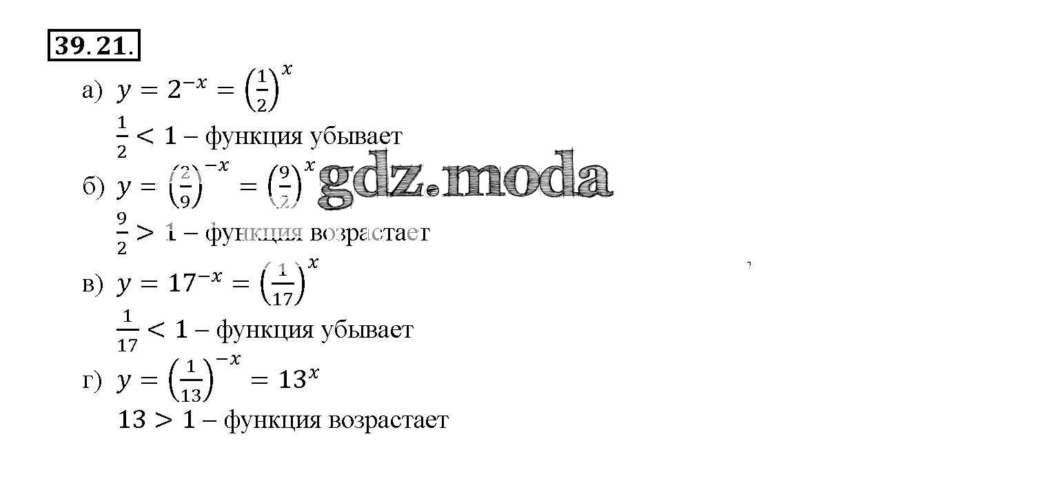 ОТВЕТ на задание № 39. 21 Задачник по Алгебре 10-11 класс Мордкович Базовый уровень