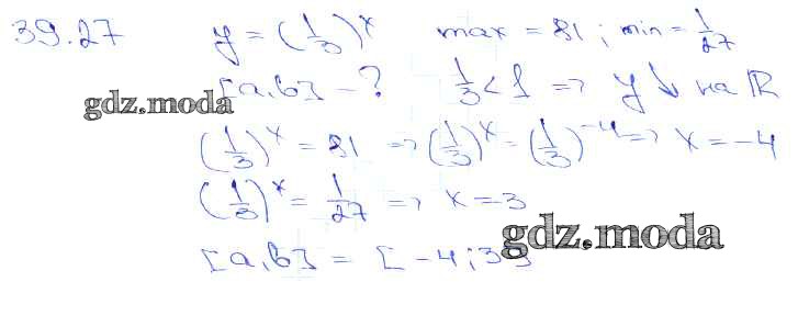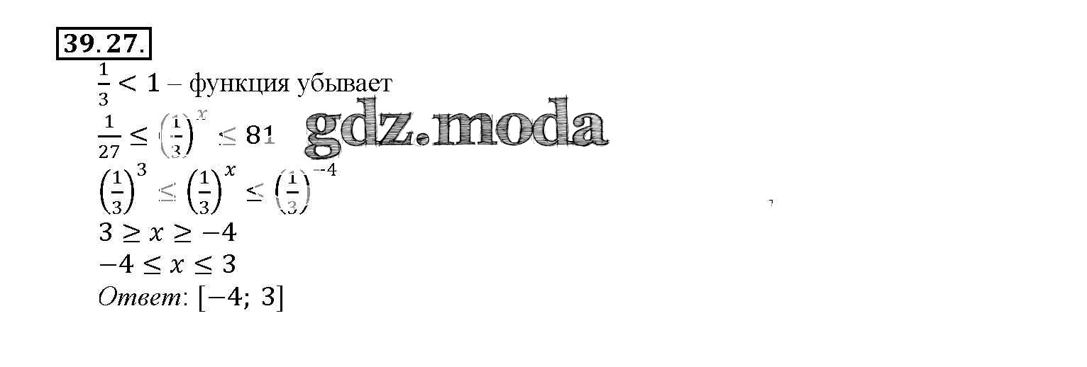 ОТВЕТ на задание № 39. 27 Задачник по Алгебре 10-11 класс Мордкович Базовый уровень
