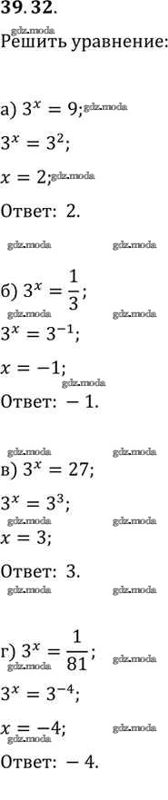 ОТВЕТ на задание № 39. 32 Задачник по Алгебре 10-11 класс Мордкович Базовый уровень