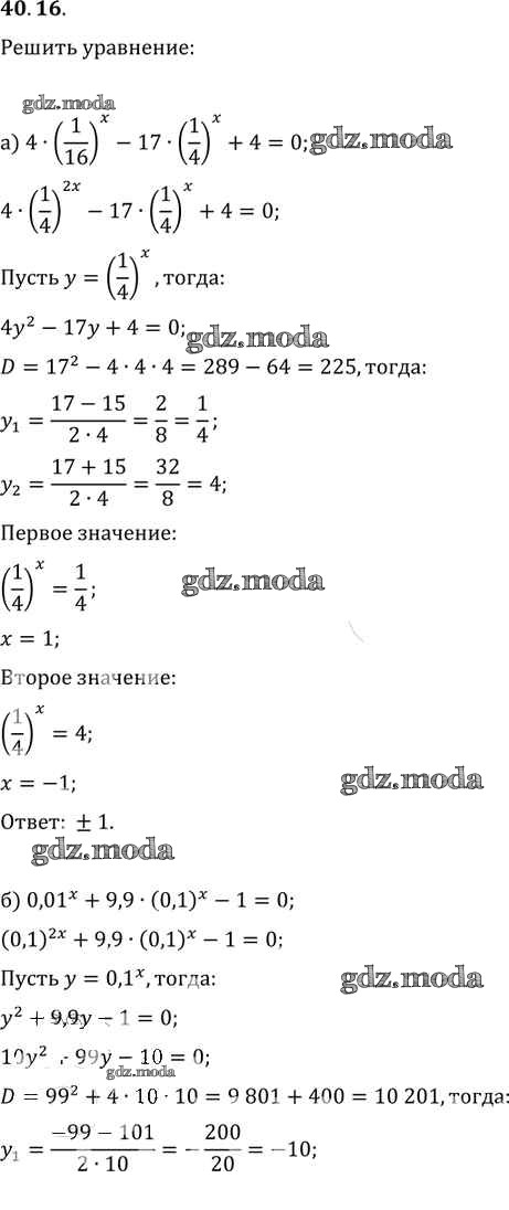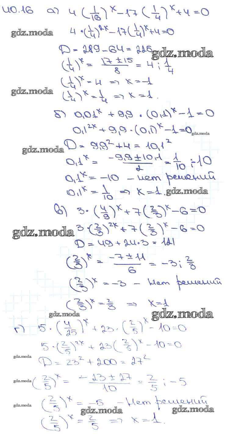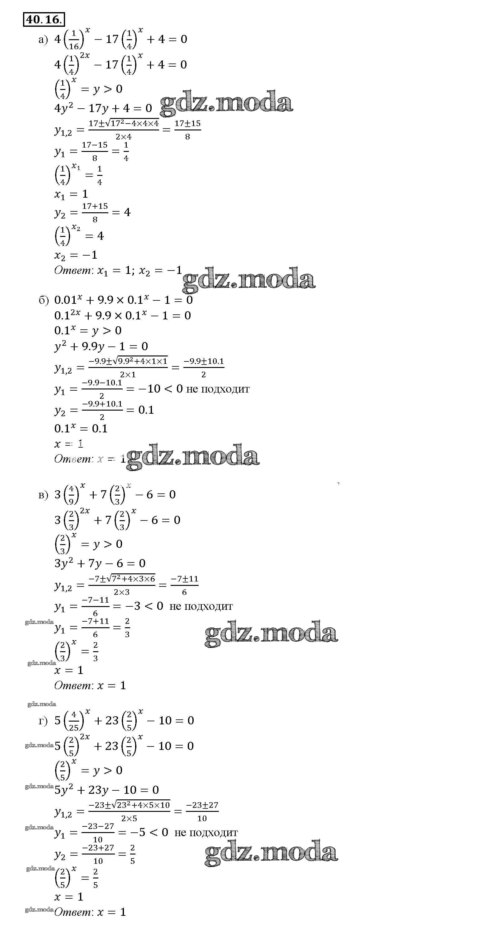 ОТВЕТ на задание № 40. 16 Задачник по Алгебре 10-11 класс Мордкович Базовый уровень