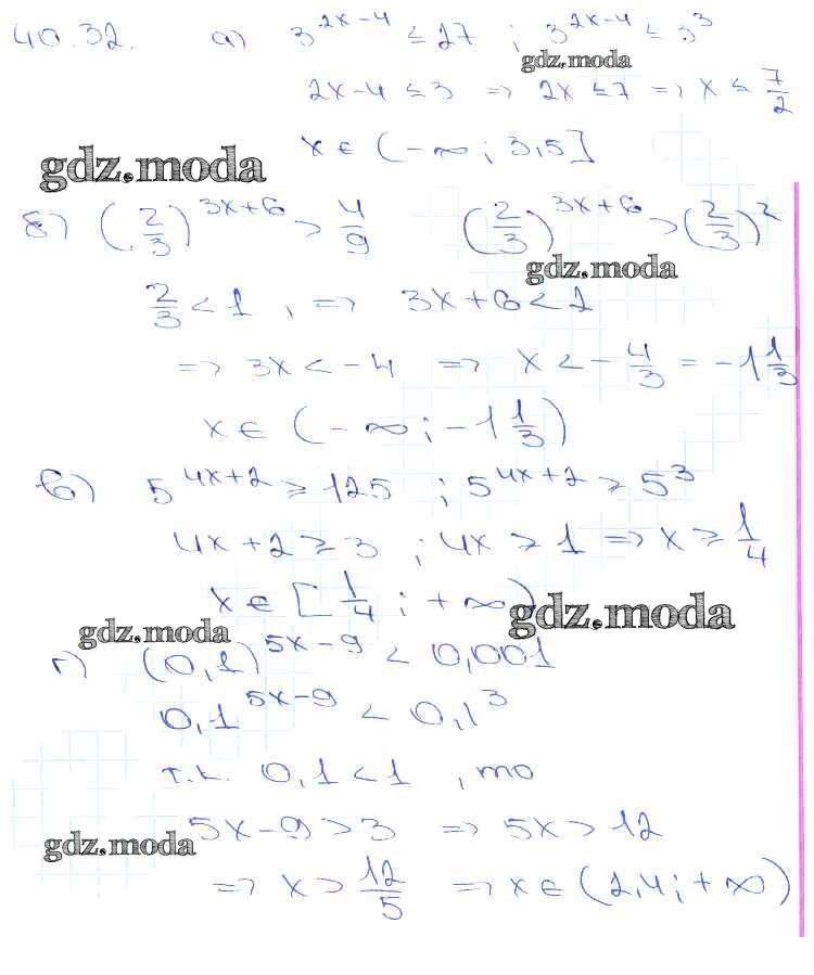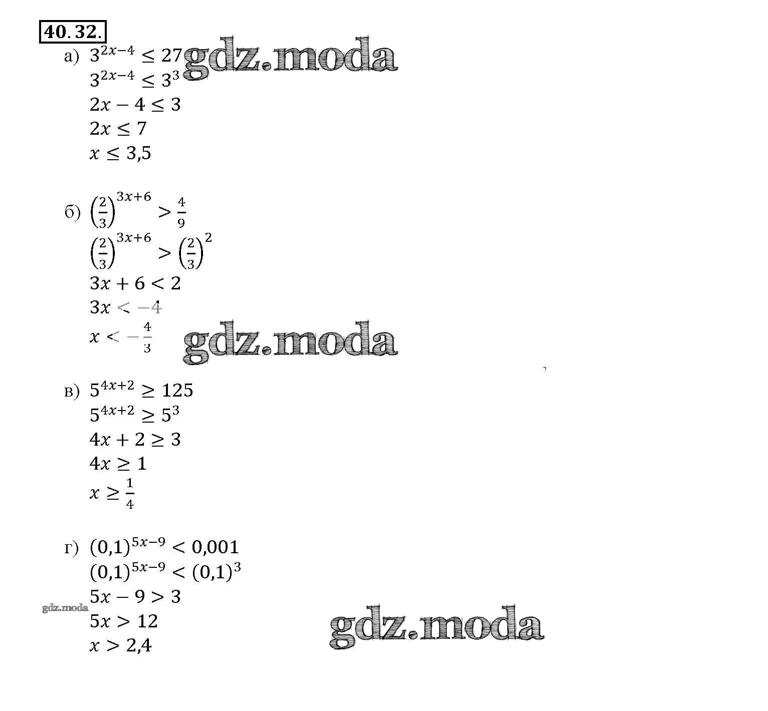 ОТВЕТ на задание № 40. 32 Задачник по Алгебре 10-11 класс Мордкович Базовый уровень