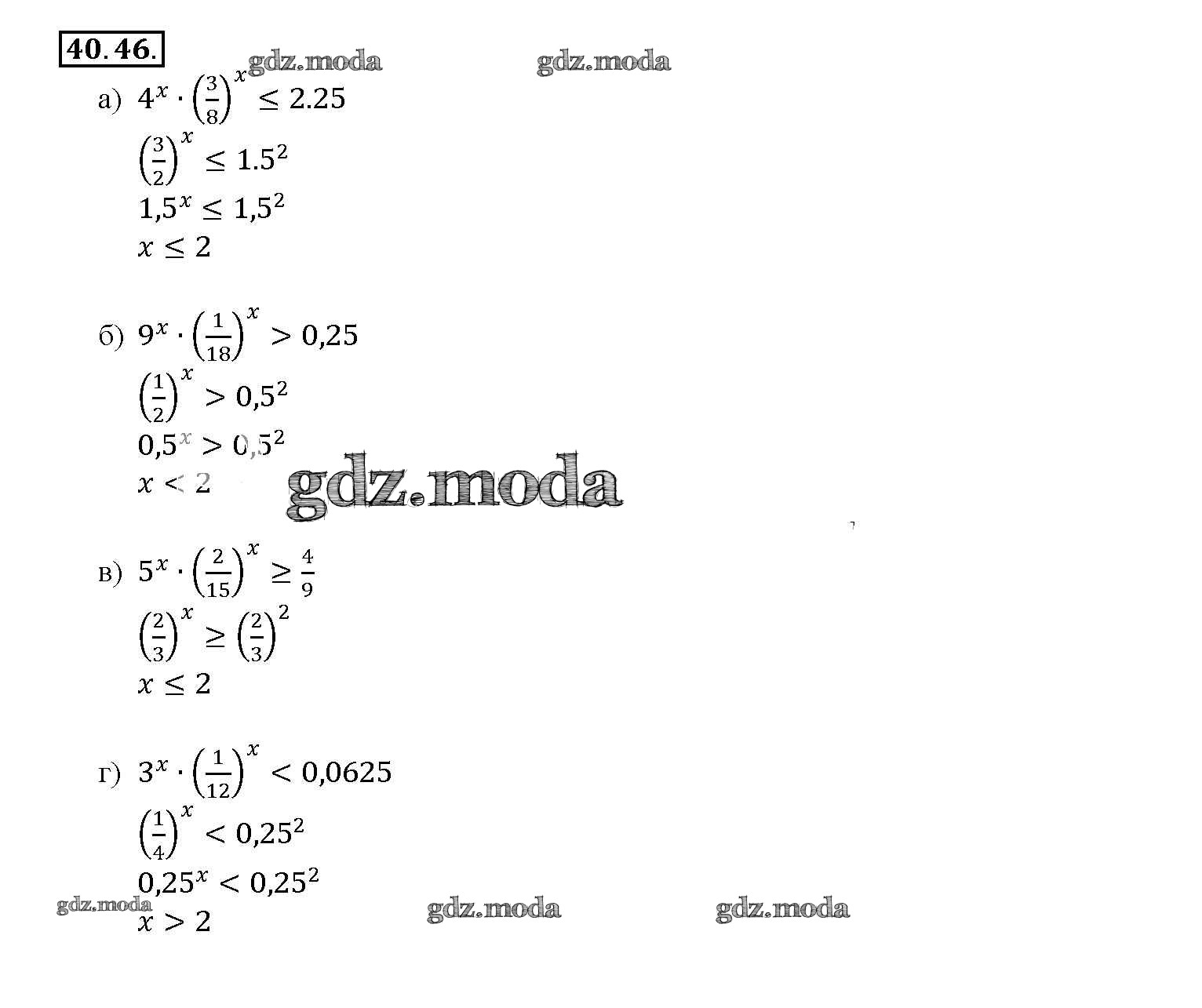 ОТВЕТ на задание № 40. 46 Задачник по Алгебре 10-11 класс Мордкович Базовый уровень
