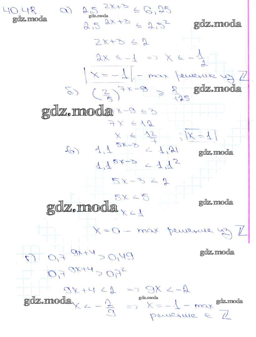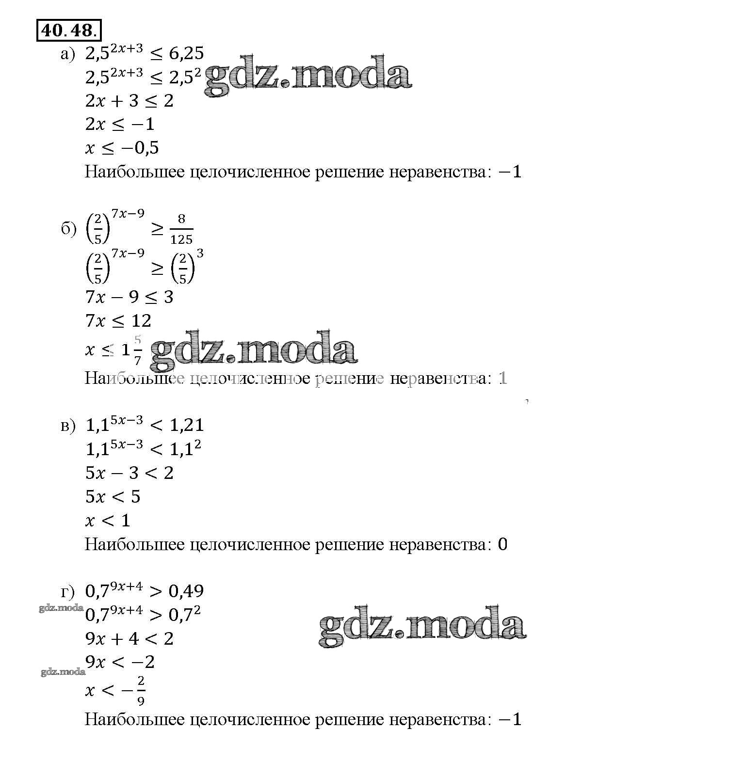 ОТВЕТ на задание № 40. 48 Задачник по Алгебре 10-11 класс Мордкович Базовый уровень
