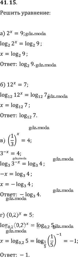 ОТВЕТ на задание № 41. 15 Задачник по Алгебре 10-11 класс Мордкович Базовый уровень