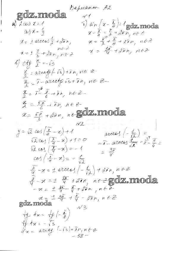 ГДЗ решение к заданию № А2 Алгебра 10-11 класс самостоятельные и контрольные работы Ершова А.П. Илекса 2016 ФГОС бесплатно на гдз.мода!