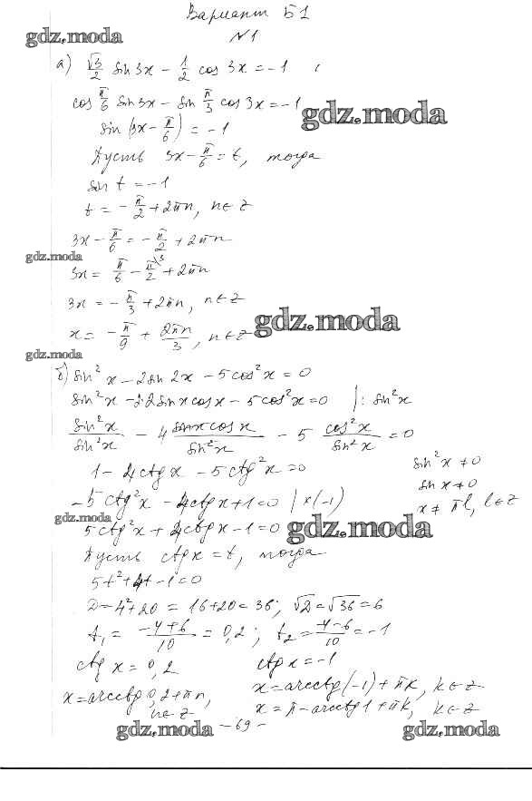 ГДЗ решение к заданию № Б1 Алгебра 10-11 класс самостоятельные и контрольные работы Ершова А.П. Илекса 2016 ФГОС бесплатно на гдз.мода!