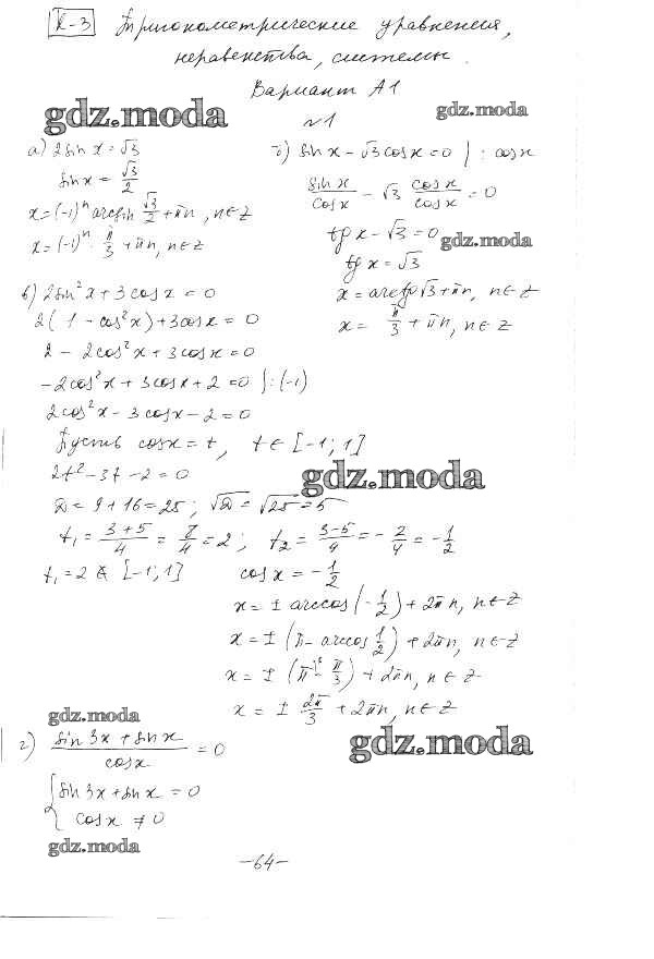 ГДЗ решение к заданию № А1 Алгебра 10-11 класс самостоятельные и контрольные работы Ершова А.П. Илекса 2016 ФГОС бесплатно на гдз.мода!