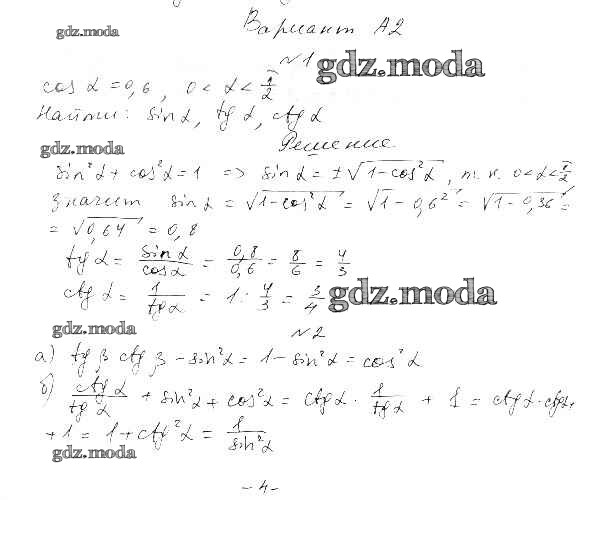 ГДЗ решение к заданию № А2 Алгебра 10-11 класс самостоятельные и контрольные работы Ершова А.П. Илекса 2016 ФГОС бесплатно на гдз.мода!