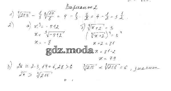 ОТВЕТ на задание № 2 Самостоятельные работы по Алгебре 11 класс Александрова УМК Базовый уровень
