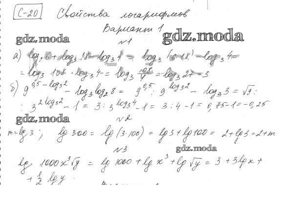 ОТВЕТ на задание № 1 Самостоятельные работы по Алгебре 11 класс Александрова УМК Базовый уровень