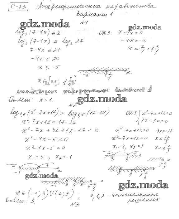 ОТВЕТ на задание № 1 Самостоятельные работы по Алгебре 11 класс Александрова УМК Базовый уровень